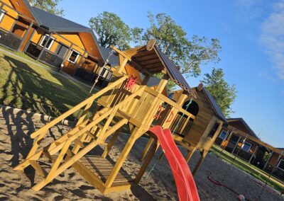 Przemyślana lokalizacja naszych domków blisko morza zapewni Wam wyjątkową możliwość korzystania z uroków letniego słoneczka i morskich kąpieli, które będą na wyciągnięcie Waszej ręki. Ale to nie wszystko Nasze miejsce to prawdziwy raj dla rodzin! Okolica oferuje wiele atrakcji, które sprawią, że wakacje Waszych pociech będą pełne radości i niezapomnianych chwil. Malownicze place zabaw, Aquapark, Latarnia morska, Pizzerie, Restauracje i wiele więcej – to wszystko czeka na Wasze dzieciaki. Ale również bardzo duża działka na której dzieci mają wiele możliwości do zabawy i aktywnego spędzenia czasu na boisku do piłki plażowej lub beach soccera, czy innych atrakcji. Cieszcie się również wygodą i komfortem naszych domków. Zadbaliśmy o to, abyście mieli wszystko, czego potrzebujecie na udane wakacje. Przestronne pokoje, w pełni wyposażone kuchnie, przytulne wnętrza – wszystko po to, abyście czuli się jak w domu, tylko z lepszym widokiem za oknem. To niezwykłe miejsce to doskonała okazja, aby stworzyć niezapomniane wspomnienia i zatopić się w beztroskiej atmosferze lata.